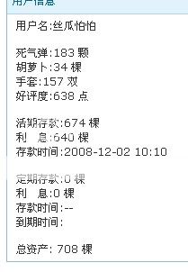 ……才發現自己原來的胡蘿蔔大部分扔銀行去了結果現在成了窮光蛋……我是白癡TAT